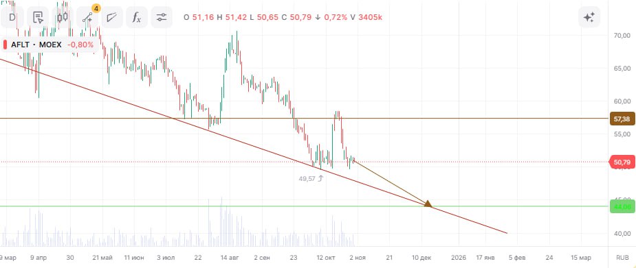 Актив находится в фазе устойчивого нисходящего тренда, формируя последовательно более низкие минимумы. При объеме позиции в 7% и выставлении стоп-заявки на уровне 57,38 руб. риск на портфель составит 0,91%.