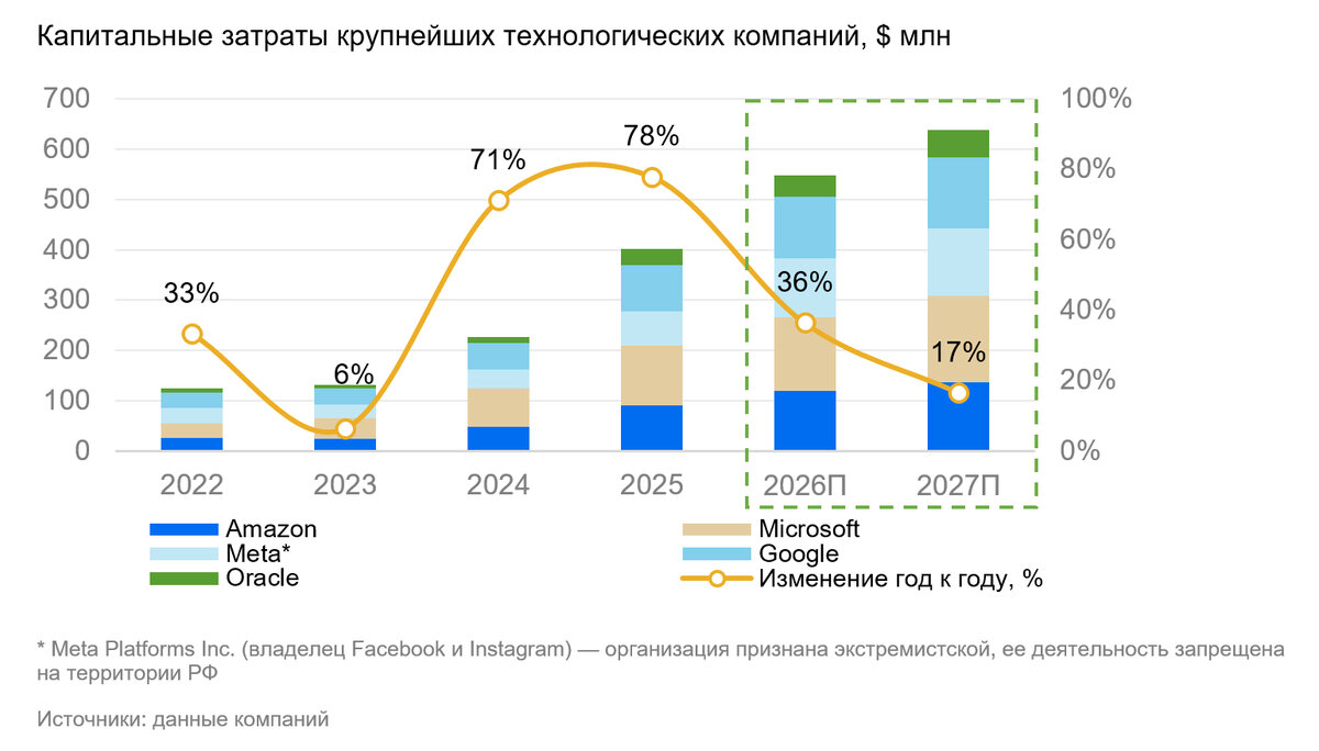 Тем не менее отмечаем влияние общих рисков для сектора. Они связаны с замедлением роста вложений у крупнейших облачных провайдеров в вычислительные мощности для ИИ. Кроме того, растет скепсис рынка, который теперь смотрит на подтверждение монетизации ИИ для конечного спроса.