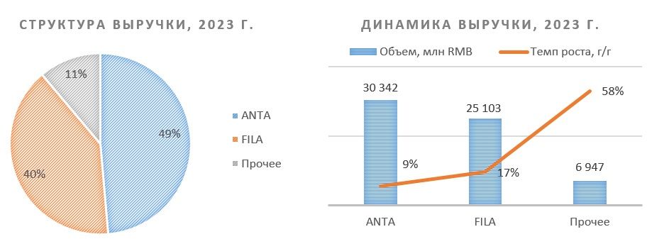 Выручка Anta Sports в прошлом году выросла на 16,2%, до RMB 62,4 млрд. EBITDA повысилась почти на 30% и достигла RMB 20,3 млрд. Показатель EPS подрос на 30%, до RMB 3,6. В 1К 2024 и продажи Anta Sports показали положительную динамику, увеличившись примерно на 5–7%.
