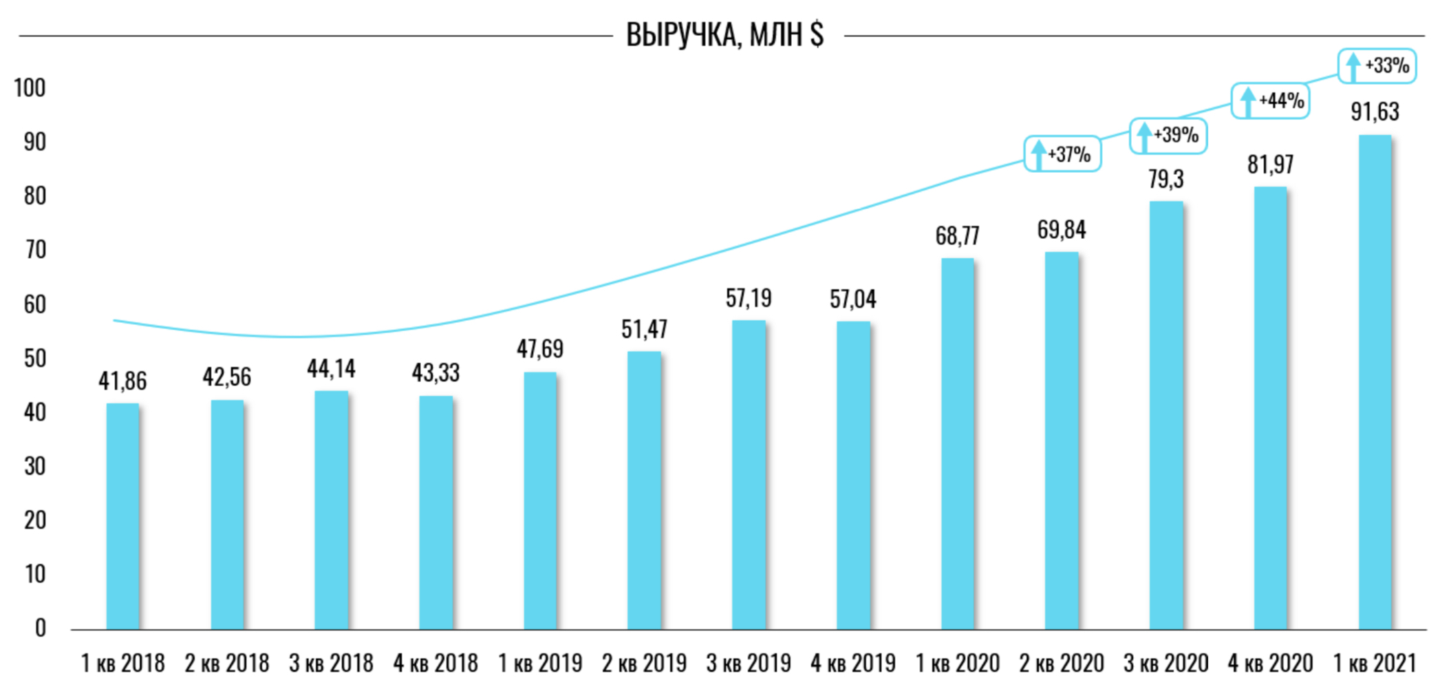 Менеджмент компании ожидает, что рынок будет расти по 25% в год и достигнет $82 млрд к 2022.