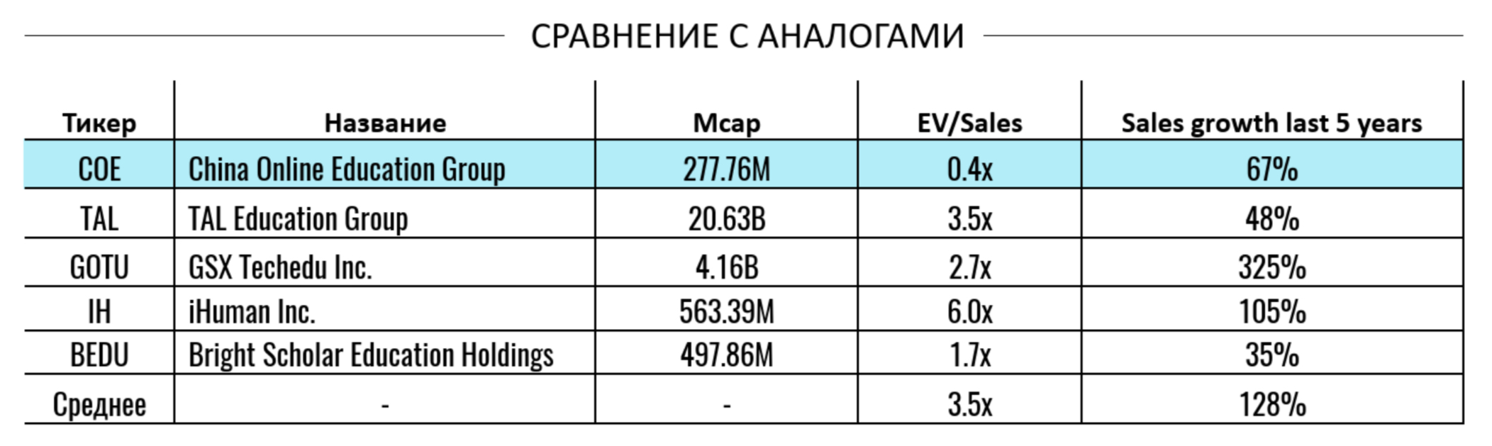 China Online Education выглядит привлекательно относительно похожих компаний: