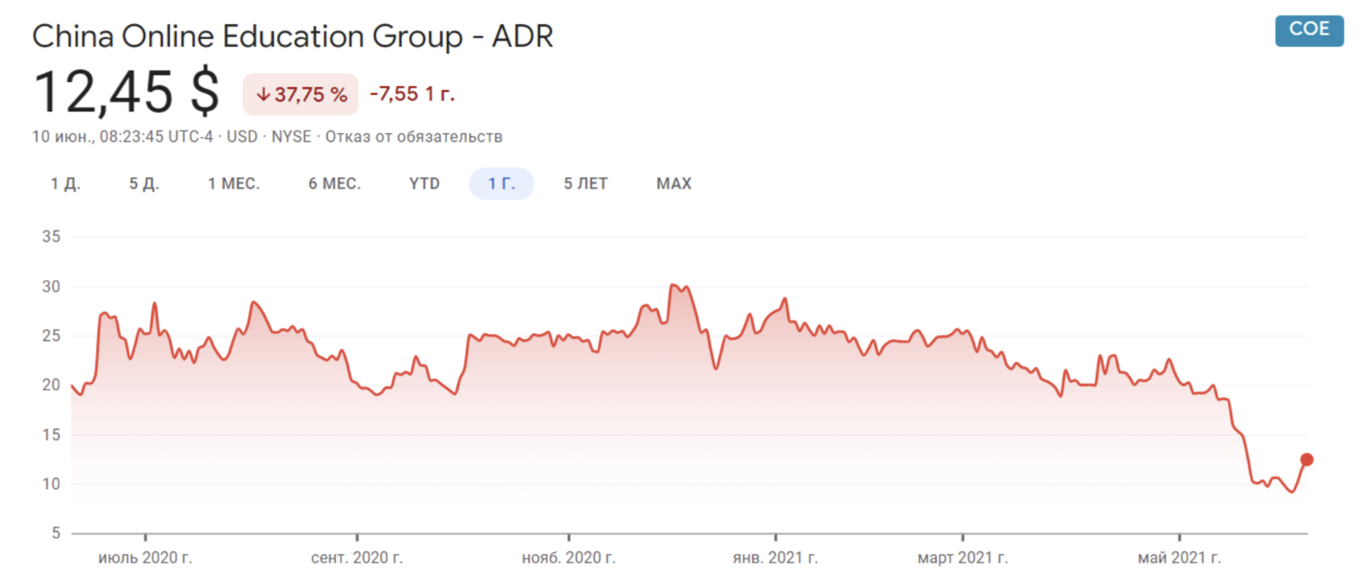 China online education (NYSE: COE) – китайская технологическая компания, которая занимается предоставлением онлайн-услуг по обучению английскому языку. Онлайн-платформа компании анализирует педагогические способности учителей, отзывы, оценки студентов, а также их опыт и рекомендует подходящих учителей студентам в соответствии с их характеристиками и целями обучения.