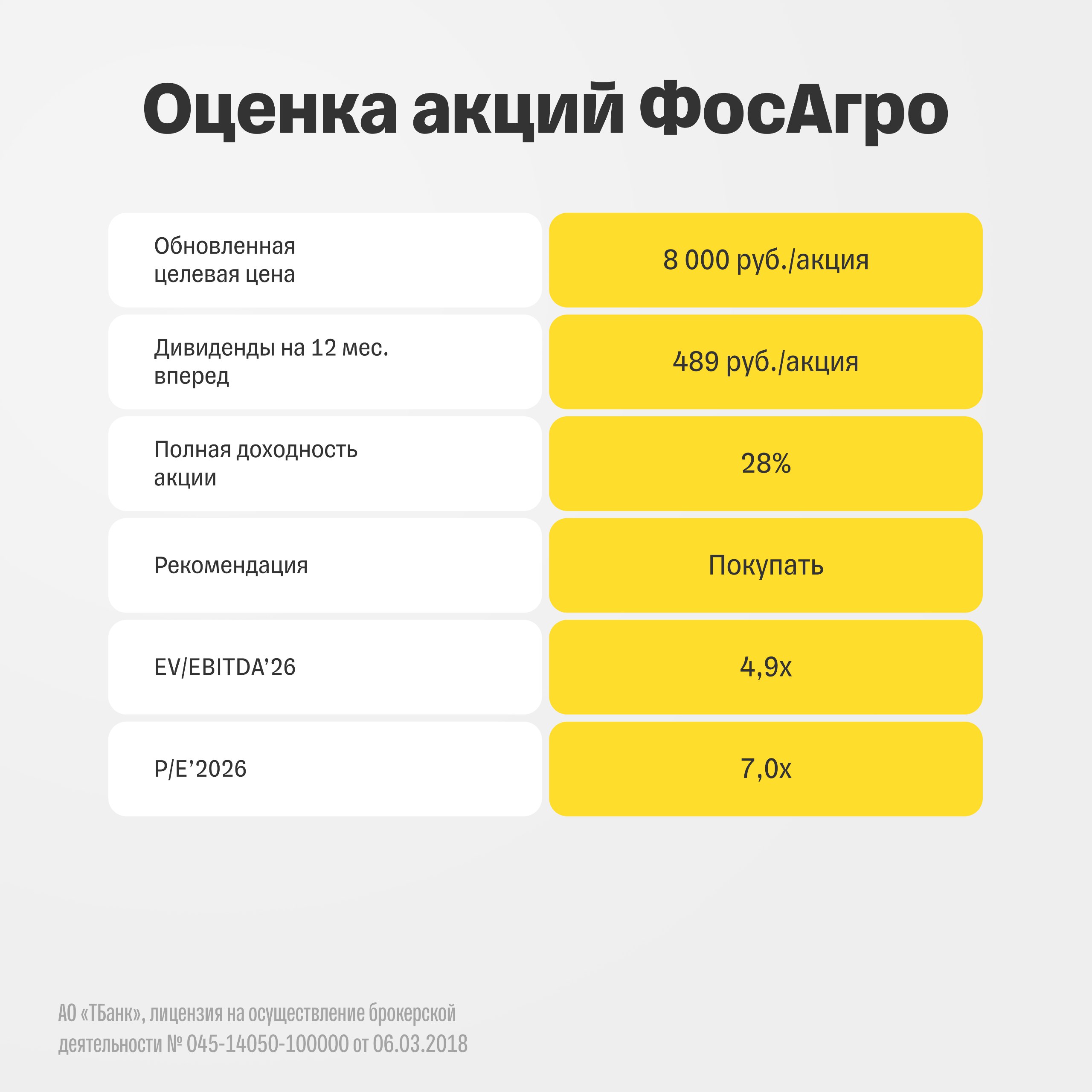 Мы понижаем целевую цену по акциям ФосАгро на 5%, до 8 000 рублей за бумагу, однако сохраняем рекомендацию «покупать».