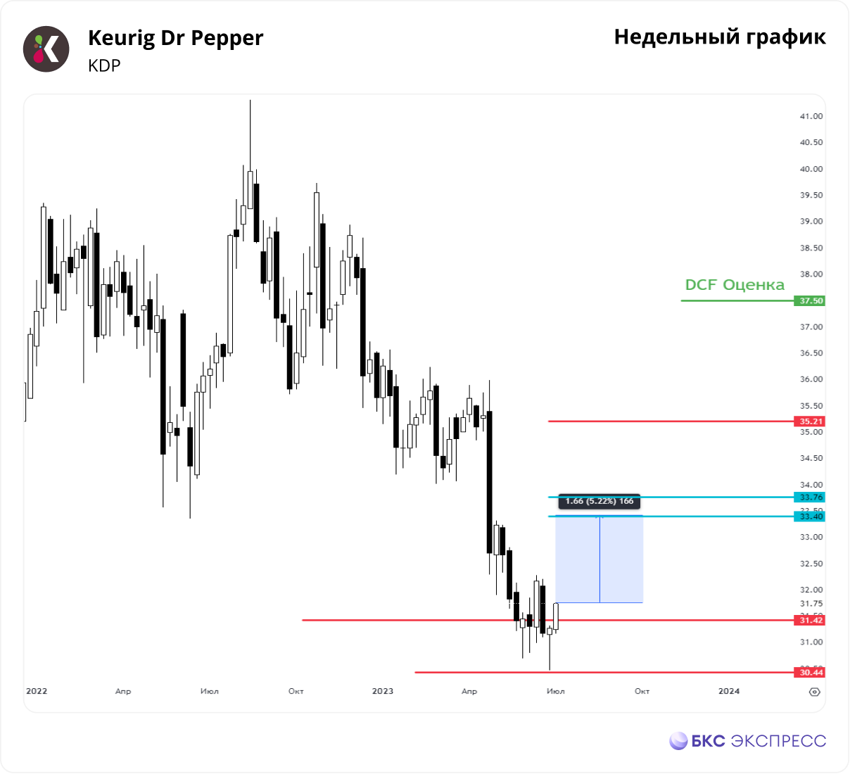 Keurig Dr Pepper (NASD: KDP) — производитель напитков. Основные бренды: Dr Pepper, Schweppes, 7UP, Canada Dry, Crush, Squirt, Big Red.