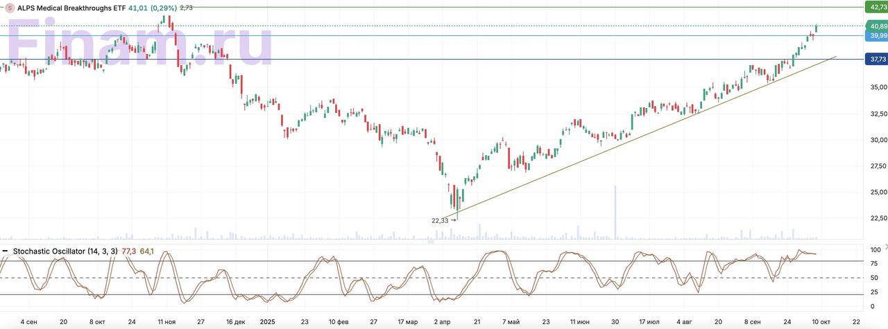 Мы сохраняем рейтинг «Покупать» для акций ALPS Medical Breakthroughs ETF, целевую цену на 12 месяцев повышаем до $54,7, что предполагает потенциал роста 33,7%.