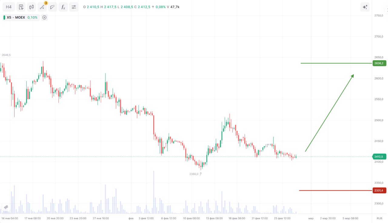 «Корпоративный центр ИКС 5» — крупный продуктовый ритейлер с сетью магазинов и доставкой. Расширение сети, развитие дискаунтера и собственных марок, сильная логистика и контроль расходов поддерживают рост продаж и выручки. Устойчивый спрос на товары первой необходимости снижает зависимость от экономических циклов, а дивидендная политика и контролируемый долг поддерживают интерес инвесторов.