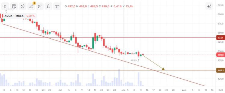 При объеме позиции в 6% и выставлении стоп-заявки на уровне 537,1 руб., риск на портфель составит 0,58%. Соотношение прибыль/риск составляет 0,89.