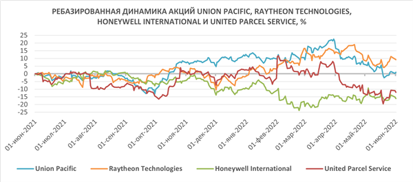 Из топ-4 эмитентов в портфеле ETF наибольшую доходность за последние 12 мес. продемонстрировали акции Raytheon Technologies (+9,26%). Бумаги Union Pacific показали нулевую динамику. Акции Honeywell International и United Parcel Service снизились в цене на 16% и 12% соответственно.