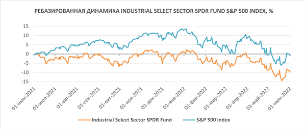 За последние 12 мес. Industrial Select Sector SPDR Fund демонстрировал динамику хуже индекса S&P 500 и просел на 9,7%. Но мы полагаем, что в среднесрочной перспективе инструмент отыграет потери и покажет доходность лучше широкого рынка за счет благоприятной обстановки в оборонном и транспортном секторах, крупнейшие представители которых входят в состав фонда.