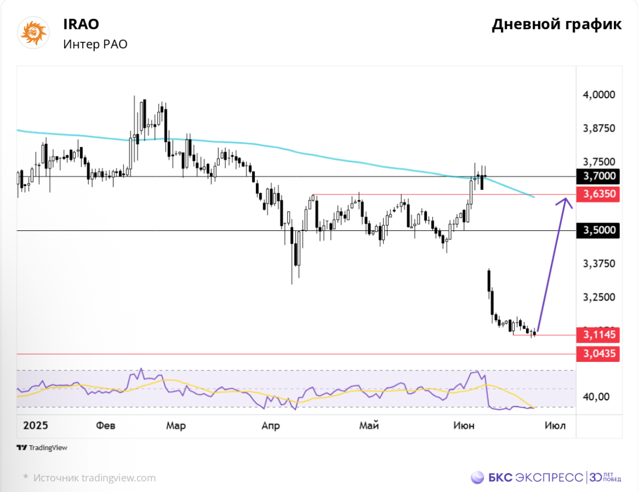 В начале июня 2025 г. наблюдается дивидендный гэп, составивший более 11%. Даже без учета дальнейшего снижения величина гэпа превысила дивдоходность. Бумаги обновили двухлетний минимум, что в совокупности говорит о перепроданности.