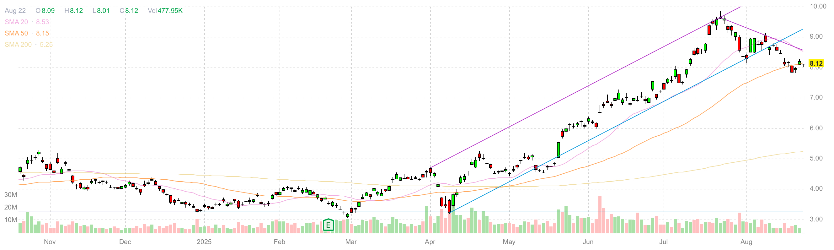 Sibanye Stillwater (NYSE: SBSW) – крупный глобальный производитель драгоценных металлов с фокусом на платиновую группу металлов (PGM) и золото. Компания ведет основную деятельность в Южной Африке и США, а также развивает переработку (recycling) металлов. Sibanye Stillwater также активно расширяет свое присутствие в сегменте "зеленых" металлов важных для энергетического перехода.
