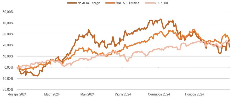Расширение газовых ТЭС. NextEra Energy объявила о партнерстве с крупным американским разработчиком энергетического оборудования GE Vernova с целью строительства новых газовых ТЭС. Таким образом, компания стремится создать дополнительные мощности для удовлетворения растущего спроса на электроэнергию со стороны дата-центров и промышленности.