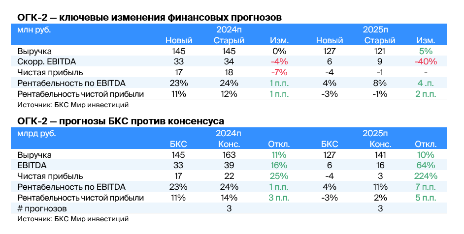 Мы считаем ОГК-2 крайне рискованной бумагой. Стабилизация ее финансового положения потребует экономии на издержках. Предполагаем, что ОГК-2 может уйти в убыток в 2025 г. и лишиться около 70% EBITDA. Мы также не ожидаем возобновления выплаты дивидендов. Отмечаем регуляторные риски (изменение правил и цен на рынке электроэнергии и мощности), а также риски корпоративного управления.