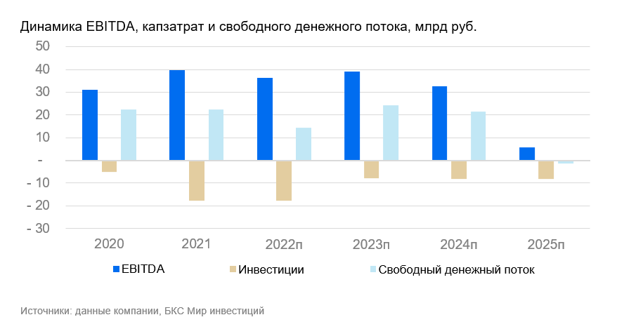 Дивиденды после 2025 г. под вопросом. Считаем, что за 2024 г. компания еще может выплатить дивиденды, а вот в дальнейшей перспективе они под вопросом. В случае стабилизации ситуации дивидендные выплаты были бы катализатором.