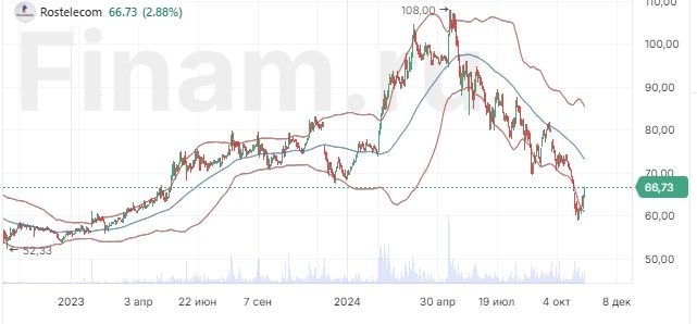 С начала 2023 года и до весны 2024 года акции Ростелекома следовали устойчивому восходящему тренду вследствие надежд на новую дивидендную политику и публикацию отчетности. После публикации отчетности и подтверждения дивидендной политики основную роль начало играть движение процентной ставки. Тренд стал отчетливо нисходящим, и стоимость обыкновенной акции снизилась до такого уровня, что дивидендная доходность составила около 10%.