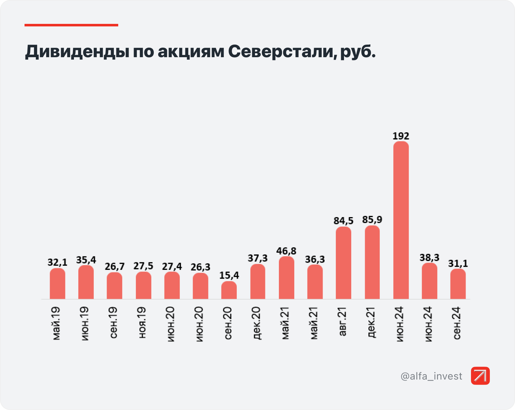 9 сентября — последний торговый день перед закрытием дивидендного реестра Северстали. То есть чтобы получить выплаты, на закрытии торгов инвесторам нужно иметь эти акции в портфеле.