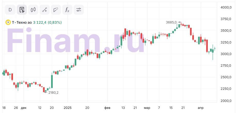 Руководство Т-Технологий подтвердило свои финансовые прогнозы и по-прежнему ожидает роста чистой прибыли в 2025 г. как минимум на 40% при рентабельности капитала выше 30%. Кроме того, менеджмент рекомендовал выплатить дивиденды за 1-й квартал в размере 33 руб. на акцию (дивдоходность 1,1%) и подтвердил намерение и далее направлять 30% прибыли на выплаты акционерам. При этом в компании не исключили возможности проведения buyback акций в случае существенного снижения котировок.