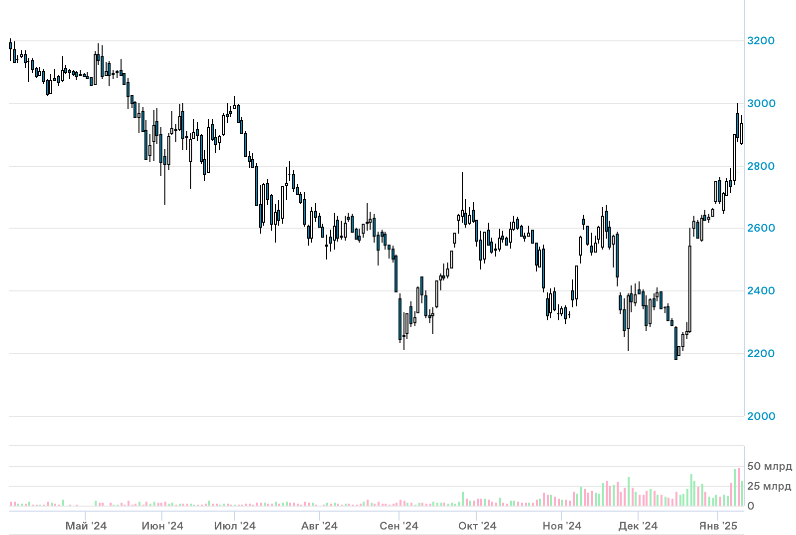 Абсолютным лидером роста в конце прошлой недели стали бумаги Т-Технологий — они показали максимальный рост среди всей базы расчёта индекса МосБиржи.