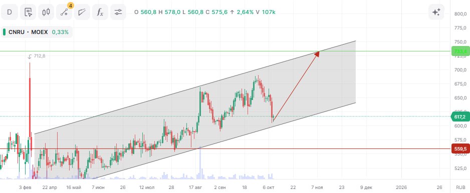 Актив торгуется в восходящем ценовом канале, демонстрируя четкие границы динамического сопротивления и поддержки.