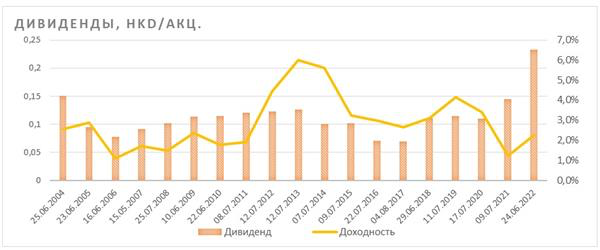 Zijin Mining Group ежегодно платит дивиденды. Дивидендная доходность акций компании относительно невысокая, но стабильная. По итогам 2021 г. компания распределила на дивиденды 5,3 млрд юаней, что на 67% больше, чем в предыдущем году. Дивиденды составили 0,2 юаня на акцию и были выплачены 24 июня 2022 г.