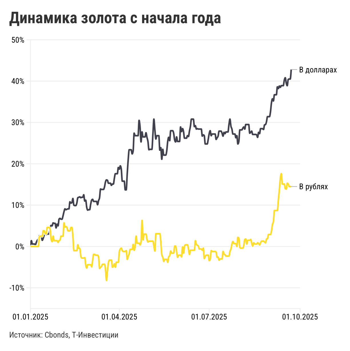 Апрельский исторический максимум был пройден: на текущий момент золото торгуется около уровня $3 750 за унцию, а рост долларовых цен на золото с начала года составил порядка 43%.